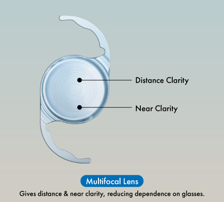 Monofocal Lens Clear distance vision; glasses needed for near vision
